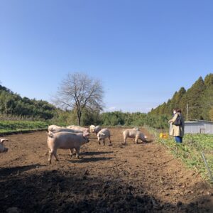 「走る豚」、その名の通り 豚さんたちが走り回り 砂浴びをし、昼寝をし…
